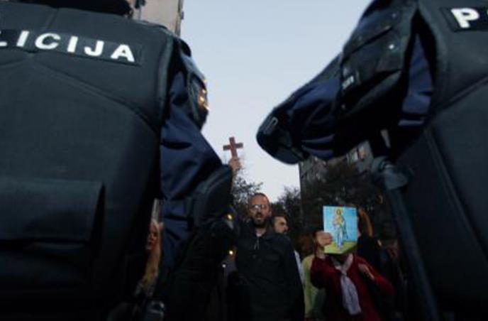 Pokret "Naši" i "Obraz" saopštili da je policija privela sedam njihovih pripadnika jer su bili u obeležjima pokreta i oduzela im letake koji su pozivali na otkazivanje izložbe
