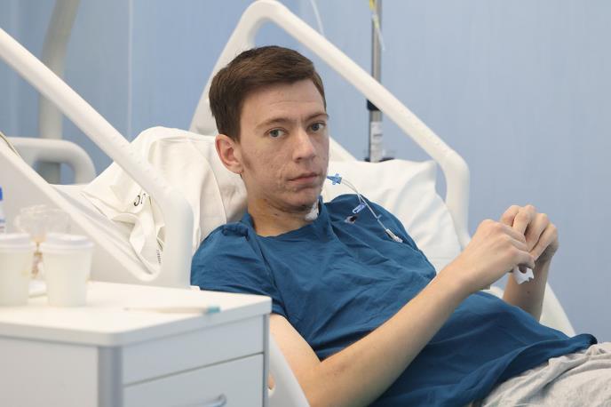 Kad smo ušli kod ovog momka bio mu je, kako nam reče, anesteziolog prim. dr Nataša Petrović, načelnica anestezije u Urgentnom centru UKC Srbije i članica tima za transplantaciju jetre, 13. dan od presađivanja jetre.