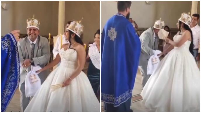 Neobična scena odigrala se na jednom crkvenom venčanju u Srbiji gde je mladoženja, iz samo njemu znanog razloga, u sred ceremonije, dok je pop držao molitveni čin, počeo nekontrolisano da se kikoće!