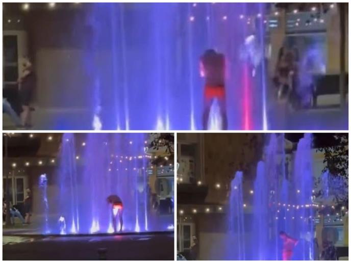 Momak se skinuo u kupaći, stao pored gradske fontane i rashlađivao se dok su ga neki prolaznici i posmatrali.