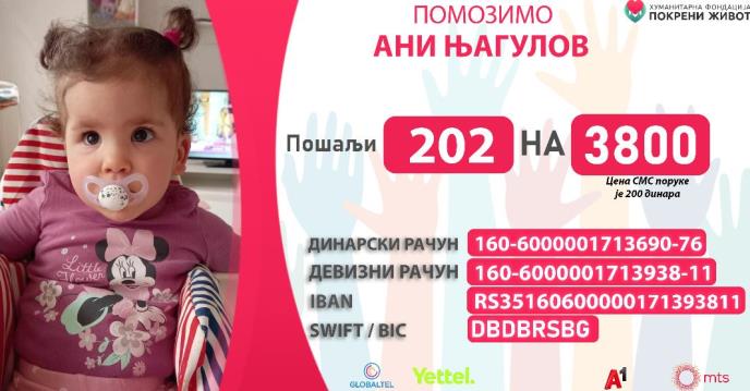 "Ovo je Ana, moja devojčica koja ima 26 meseci. Ana ima dijagnozu, oštećenje mozga, nerazvijenost bele mase, ona ne hoda,ne priča...poneku reč..., napisao je po ko zna koji put Nikola, tata male Ane Njagulov na mrežama, internetu, gde god je mogao, moleći ljude za spas svoje ćerkice.