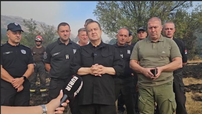 - Nažalost ovde je sada žarište jednog velikog požara gde je zahvaćeno više od 2000 hektara i sve naše jedinice koje god mogu su došle da ovde pomognu zajedno sa pripadnicima ostalih specijalizovanih, da tako kažem, državnih organa - rekao je Dačić i dodao: