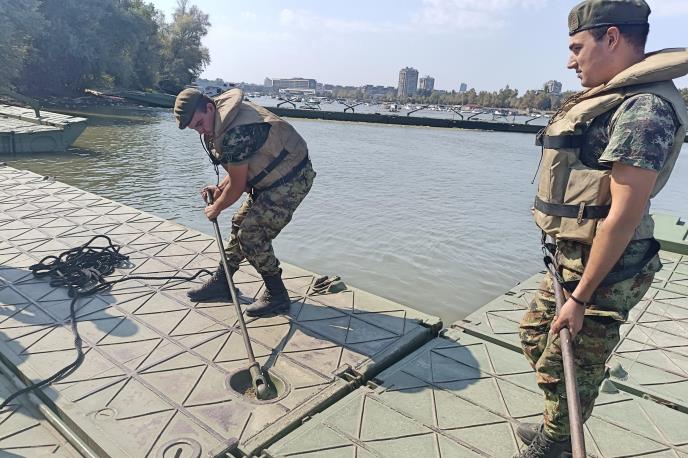 Pripadnici pontonirskih jedinica Vojske Srbije rasklopili su pontonski most koji je na reci Dunav spajao Zemunski kej sa Velikim ratnim ostrvom.