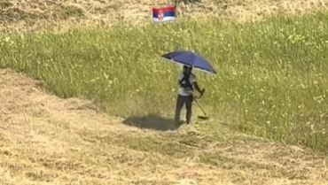 Evo i zbog čega - čovek je po nedavnim tropskim vrućinama morao da pokosi i kud će-šta će dosetio se kako da mu makar malo bude lakše.