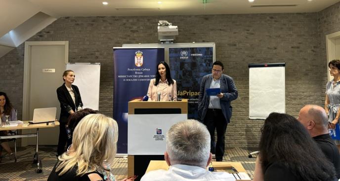 Ministarka državne uprave i lokalne samouprave Jelena Žarić Kovačević i predstavnik Visokog komesara Ujedinjenih nacija za izbeglice (UNHCR) u Srbiji Sufijan Ađali obratili su se danas u uvodnom delu obuke za matičare, čiji je cilj razvoj veština za rad sa strankama iz posebno ranjivih grupa, kao što su lica u riziku od apatridije.