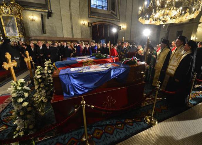 "Ovo je veliki dan za srpsku istoriju i za srpski narod", rekao je patrijarh Irinej nakon služenja liturgije u Sabornoj crkvi u Beogradu gde su preneti posmrtni ostaci i gde će biti izloženi do petka.