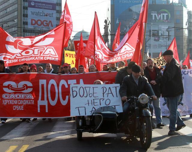 Predsednik sindikata "Sloga" Željko Veselinović kazao je okupljenima ispred zgrade Vlade da radnički sindikati iz Srbije imaju više razloga da štrajkuju nego kolege iz Italije, Španije, Kipra i drugih evropskih zemalja.