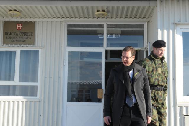VRANJE - Ministar odbrane Srbije Aleksandar Vučić izjavio je danas prilikom obilaska vojne baze "Dobrosin" u Kopnenoj zoni bezbednosti prema Kosovu da će uskoro država reagovati u vezi sa spornim spomenikom u Preševu poginulim pripadnicima rasformirane OVPBM Albanaca sa juga Srbije.