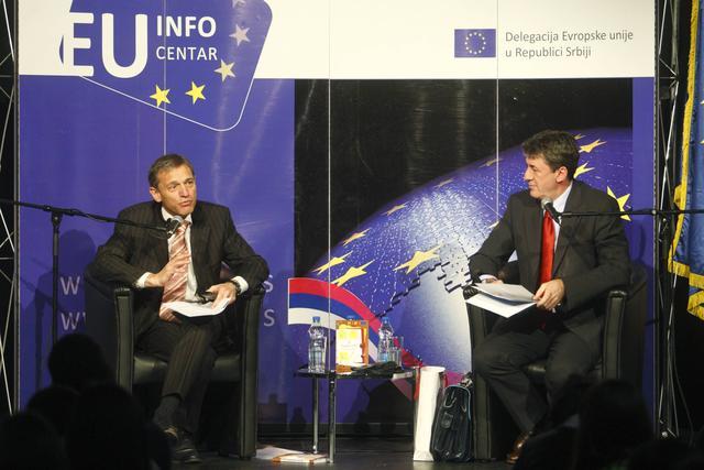 "Srbija nije mesto gde možete da se uspavate, tu se uvek nešto dešava - Preševo, barikade, administrativni prelazi... Uvek je uzbudljivo", rekao je Dežer tokom debate "Razgovarajmo o Evropi" sa srpskim srednjoškolcima.