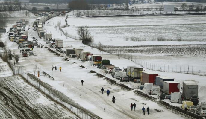 Zapadnu Mađarsku je pogodila snežna mećava, dugačka kolona vozila je ostala preksinoć zavejana na autoputu M1, na području grada Đera, a prema izveštajima agencija više hiljada ljudi bilo je primorano da noć provede u svojim vozilima ili u objektima pored puta.
