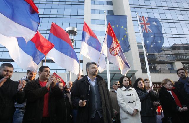 Okupljeni su nosili transparentne, među kojima i "Kosovo je obraz Srbije".