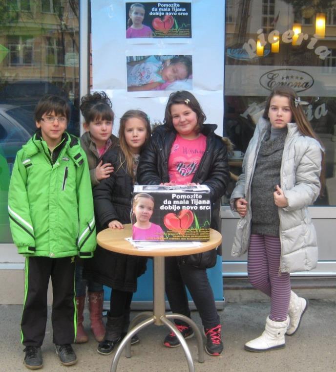 U toku jučerašnjeg dana Marta je zajedno sa još četvoro svojih drugara, Lenom Miletić, Anđelom Vukašinović, Vanjom Velimirović i Aleksom Rakićem, vredno radila na prikupljanju novčanih sredstava namenjenih Tijaninom lečenju u inostranstvu. Ovi plemeniti mališani u toku jučerašnjeg dana za Tijanino novo srce su prikupili 17.000 dinara, a humanitarnu akciju nastavili su i danas ispred restorana "Emona" u Blacu, gde će i sutra posle škole nastaviti svoj humanitarni rad.