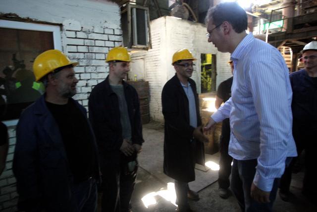 Vučića, koji je i ministar odbrane, su na ulasku u zgradu direkcije RTB Bor dočekao špalir rudara u svečanim odelima sa kojima se rukovao i popričao.