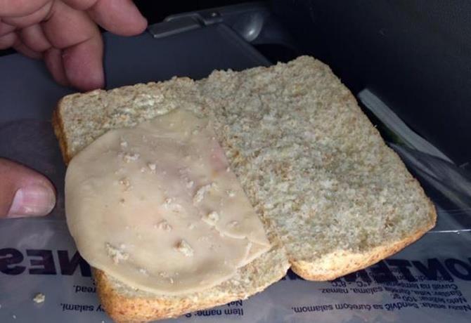 PODGORICA - Poslanik Demokratskog fronta Slaven Radunović na svom fejsbuk profilu postavio je fotografiju sendviča kojima služe putnike u avionima Montenegro Erlajnza.