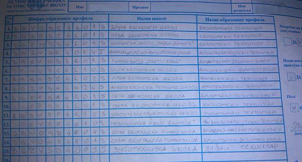 Oni do 15 sati u svojim osnovnim školama popunjavaju listu sa odabranim školama i obrazovnim profilima.