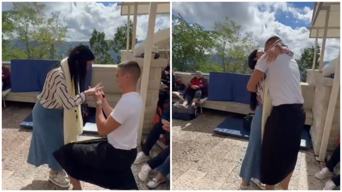 Prelepa scena pod Ostrogom: Mladić zaprosio devojku pred svetinjom, vernici oduševljeno klicali! (VIDEO)