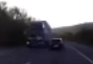 Na njemu se vidi automobil u rizičnom preticanju. To vozilo obilazi drugi automobil i bulvalno "za dlaku" stiće da se vrati u svoju traku pre direktnog sudara sa kamionom.