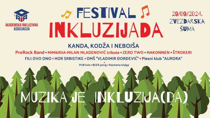 Festival "Inkluzijada" u organizaciji Akademske inkluzivne asocijacije biće održan u nedelju 29. septembra u Zvezdarskoj šumi u cilju promocije inkluzije u društvu. Festival obuhvata bogat muzički i zabavni program koji će trajati od 15 časova do kasnih večernjih sati.