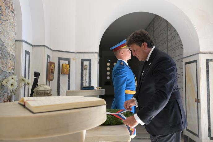 - Zato je naš boravak ovde više od posete i obilaska istorijskih znamenitosti. Ovo je naše hodočašće - tačka susreta mita i stvarnosti. U Krfu, Vidu i Plavoj grobnici veliki Milutin Bojić video je kolevku "bajke za vremena". I ona to, zaista, jeste. Ovde je usađen jedan kamen, ugaoni kamen našeg trajanja i stradanja. Ovde se teški i nemilosrdni točak istorije zaustavio i krenuo u suprotnom smeru, vodeći nas u blistave pobede Solunskog fronta - istakao je ministar Gašić i dodao da je, nažalost, u njegovom tragu ostalo mnogo kostiju naših predaka.