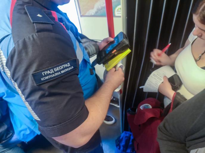 Uobičajena slika u javnom prevozu u Beogradu - građani i kontrolori na istoj stanici ulaze u vozilo. Putnici kucaju poruku na telefonu kako bi platili kartu. Međutim, iz tehničkih razloga poruka ne može da se pošalje.