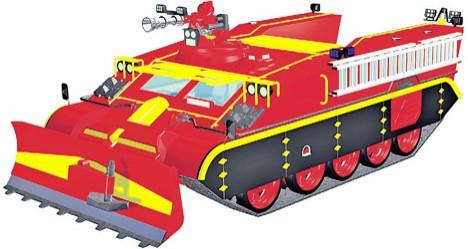 Na osnovu starog tenka konstruktori su postavili ralicu kojom se efikasno mogu presecati vatrene zone i sprečavati širenje ognja. Kao nadgradnja predviđeni su, takođe, rezervoari za 10.000 litara vode, tankovi za močilo i ekstrakt, i obrtno postolje na koje je pričvršćen bacač pene dometa stotinu metara, sa kamerom koja omogućava preglednost iz unutrašnjosti vozila. Tu su i specijalna vatrogasna oprema, vitla s mlaznicama za vodenu maglu do 800 litara u minutu, instalacije za hlađenje vozila u požaru i teleskopski nosač sa reflektorom.
