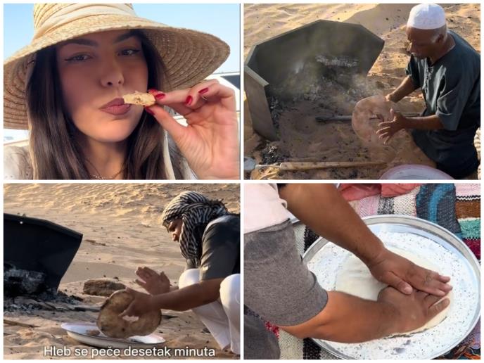 - U Libiji sam probala hleb ispečen u pesku, hleb se zove Taguela i krakterističan je za Tuarege, saharski narod. Nakon što se testo umesi i razvije dodaju se začini poput susama, anisa i kima - navela je Jovana u svom video-snimku na Tiktoku.