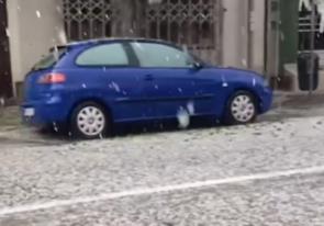 U Batočini pada jak grad, usled kojeg su se ulice i krovovi zabeleli.