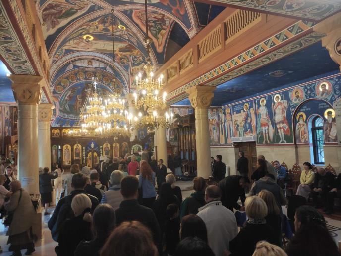 Inače, ovaj hram danas proslavlja svoju slavu - Pokrov presvete Bogorodice. Unutra, ali i ispred našao se veliki broj vernika.