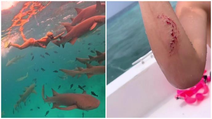- Krenuli smo na jedan od najzanimljivijih izleta na našem putovanju na Maldivima, pa da vam malo opišem celo iskustvo. Ovi morski psi oko nas su "nurs šarks" (siva tigar ajkula), koji inače ne napadaju ljude i hrane se ribom, lignjama i slično. Dobili smo i striktne upute kako se ponašati, kao, na primer, da ne smemo gurati prstiće prema njihovim ustima ili ih provocirati. E sad, mi smo u moru oko njih plivali sigurno tri sata, stalno je ulazio neko drugi. Moguće je da smo ih uznemirili i nažalost došlo je do ovoga - rekla je ona usnimivši ruku devojke na kojoj su se jasno videli otisci zuba ajkule.
