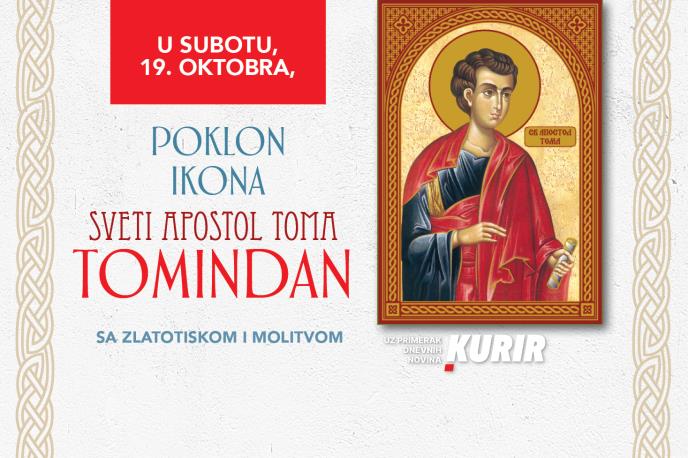 U subotu, 19. oktobra, uz dnevne novine Kurir vas očekuje poseban poklon povodom Tomindana – ikona Svetog apostola Tome u zlatotisku sa molitvom!