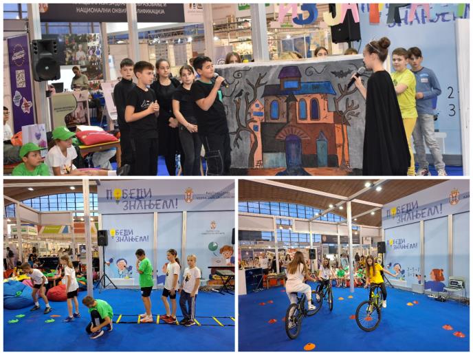Primeri dobre prakse u osnovnim školama, kao i različite aktivnosti koje zajednički realizuju nastavnici i učenici, predstavljeni su danas u okviru "Sajma obrazovanja i nastavnih sredstava" na štandu Ministarstva prosvete, čiji je slogan slogan "Pobedi znanjem".