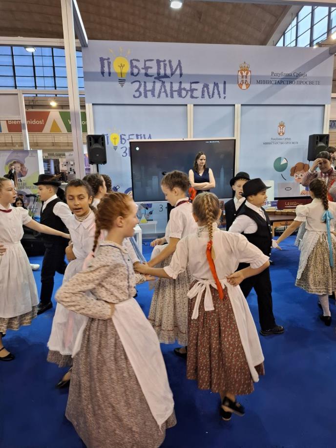 Na štandu Ministarstva prosvete u okviru Sajma obrazovanja i nastavnih sredstava pod sloganom „Pobedi znanjem“ učenici i nastavnici osnovnih škola predstaviće svoje učeničke zadruge i aktivnosti u okviru obogaćenog jednosmenskog rada, dok će srednje stručne škole predstaviti obrazovne profile i postignuća svojih učenika.