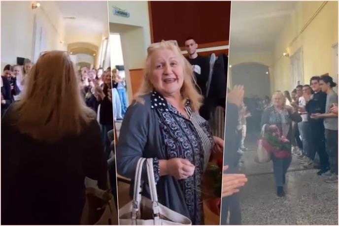 Ne ispraća se svaki profesor ovako! Elizabetu iz Pančeva dočekale ruže, gromki aplauz i špalir: Njeni đaci i kolege je ovim potezom oduševili! (VIDEO)
