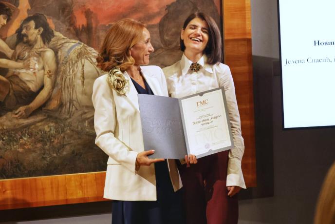 Našoj novinarki je zahvalnicu Kluba prijatelja Galerije Matice srpske, koja se dodeljuje za saradnju, podršku i dobročinstvo, uručila dr Tijana Palkovljević Bugarski, upravnica GMS.