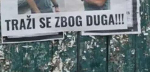 Ispod niza umrlica, neko je prelepio umrle i postavio plakat s natpisom "Traži se zbog duga!!!" uz fotografiju muškarca srednjih godina.