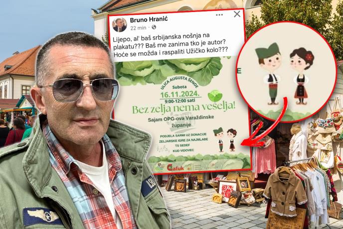 - Lijepo, al baš srbijanska nošnja na plakatu? Baš me zanima tko je autor. Hoće se možda raspalit i Užičko kolo? - napisao je revoltirani načelnik opštine Vidovec Bruno Hranić, revnosni član HDZ.
