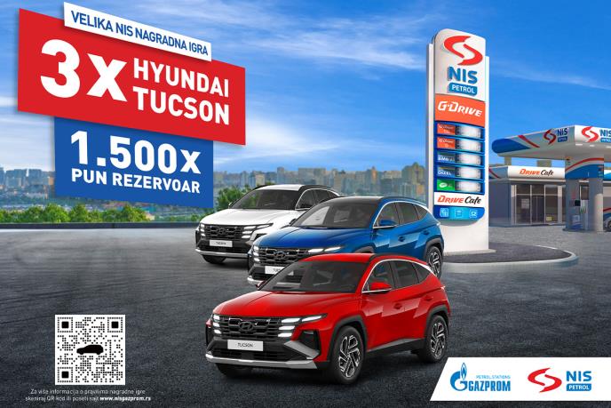Na više od 300 lokacija u Srbiji čeka vas šansa da učestvujete u najvećoj nagradnoj igri NIS Petrola i Gazproma do sada! Možda baš Vi uđete u Novu godinu za volanom novog Hyundai Tucson automobila!