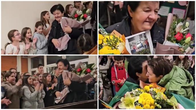 Omiljena učiteljica dobila je na poklon cveće, ali i uramljenu sliku sa svojim učenicima.