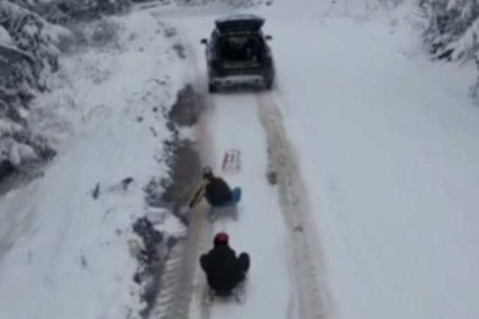 Kako se vidi na snimku podeljenom na Instagramu, vozač automobila za koji su prikačene sanke, vuče dvoje dece po snežnom putu, a koliko je scena naizgled zimske idile zabrinula korisnike najbolje se vidi iz komentara.