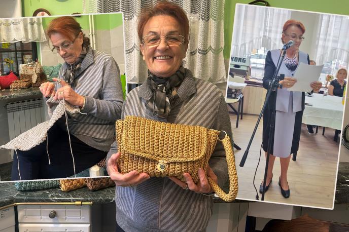 Ova penzionerka je pre tri meseca rešila da pokrene sopstveni biznis, ona hekla, veze i plete torbice koje potom prodaje po čitavoj Srbiji. Radila je 25 godina u osnovnoj školi kao učiteljica, potom se razbolela. Dijagnostikovan joj je karcinom grlića materice. Na svu sreću, 30 godina kasnije, tu je radna i sposobna. Nakon bolesti otišla je u penziji, u kojoj je već 26 godina, ali tokom svih tih godina od heklanja nije odustala.