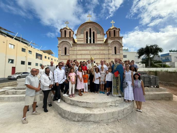 Hram je izgrađen po blagosloslovu blaženopočivšeg Mitropolita Amfilohija i njegovog naslednika episkopa Kirila. Sa episkopom Kirilom sasluživali su otac Simeon Sergio Lopez Kolumbijanac, inače svestenik SPC u Medeljinu i arhimandrit Evstatije Miloš Azdejković koji inače i vodi poslove oko gradnje ovog jedinog pravoslavnog hrama na Karibima. Takođe da napomenemo da su se crkvena zvona u nedelju čula po prvi put u ovom delu sveta, zahvaljujući donatorima ovih zvona porodicama Miranović iz Podgorice, Trajkovski i Stefanov iz Skoplja.