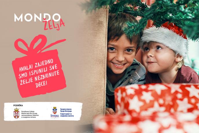 Kao i prethodnih godina, organizovana je jedinstvena humanitarna akcija MONDO ŽELJA, u kojoj čitaoci MONDO portala imaju priliku da se prijave i ulepšaju praznike mališanima bez roditeljskog staranja, koji žive u domovima socijalne zaštite širom Srbije.