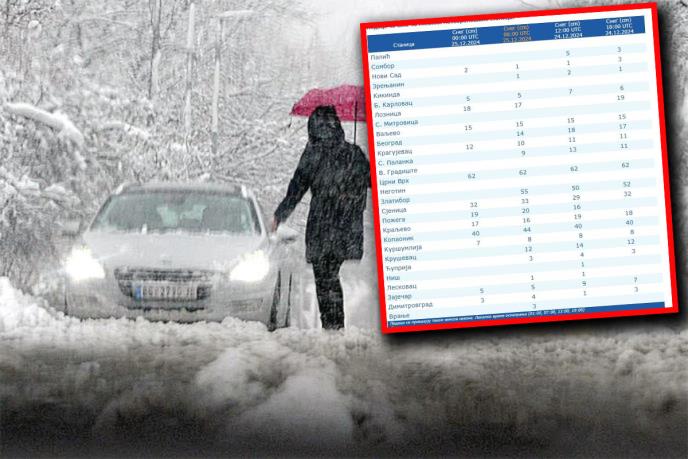 RHMZ je za danas najavio novu turu padavina u Srbiji ali i objavio tabelu na kojoj se vidi koliko je u kom mestu palo snega.