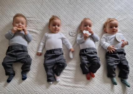 "Svaki dan je izazovan. Ujutru ustanu, mi ih nahranimo, oni zatim malo zaspu, malo odmore. Nakon toga se bude, doručkujemo, idemo u šetnju, onda sledi ručak. Oni se u međuvremenu igraju sa starijim bratom. Naveče sledi večera. Sada su počeli da pužu, svako ide na svoju stranu, istražuju, ustaju... Polako se dižu na noge", priča ona.
