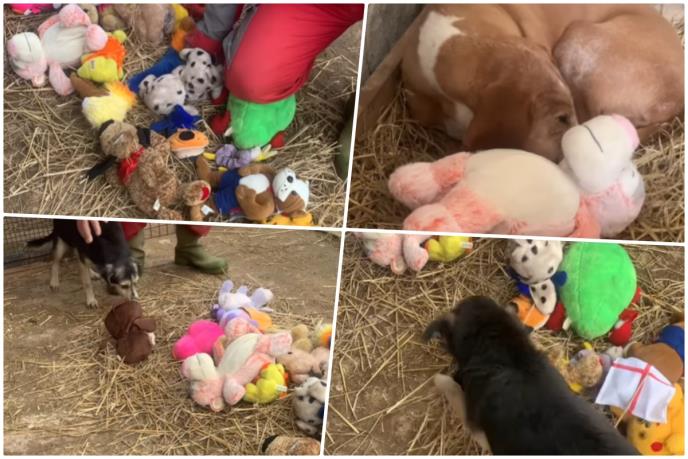 Volonteri su skupili plišane igračke na jedno mesto, ali su onda došli do razočaravajućeg otkrića kada su psi počeli da ulaze u boks.