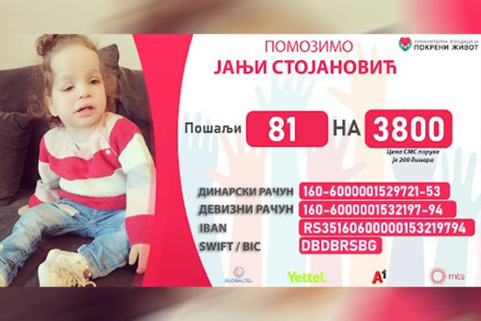 "Dragi naši, Na žalost moramo Vas obavestiti da je Janji potrebna još jedna doza leka. Nakon prve doze koju je primila u novebru 2024. godine, njeno stanje se promenilo, bolje je. Ali da bi skroz zaustavili rad smrtonosnog gena potrebna joj je još jedna doza. Zato Vas molimo da i ovoga puta budete uz nas i uz našu Janju. Sam lek košta 70 000 € + dodatni troškovi koji prate sam tok boravka u Nemačkoj! 81 na 3800", objavljeno je na profilu "za_janjinu_pobedu".