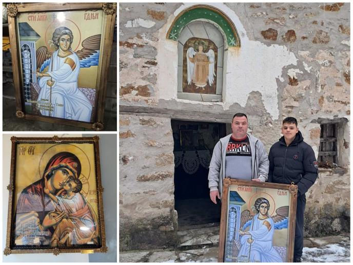 - Posle rodnog sela oca, i ostala sela u okolini Bujanovca su poželela da dobiju svoj krst. Tako sam s bratom napravio njih šest za šest različitih sela. Žuželjici sam poklonio i četiri ikone da ljudi imaju i gde da se mole. To je rad na debelom papiru s gvozdenim ramom koji je ručno napravljen. Još tri ikone smo podelili i drugim selima. I kažem, ko god želi, može da mi se obrati, vrlo rado ću izraditi ikone i dati. Crkvi i Bogu se ne naplaćuje. Ovo je za zdravlje moje porodice i za spasenje - ističe Veljanović.
