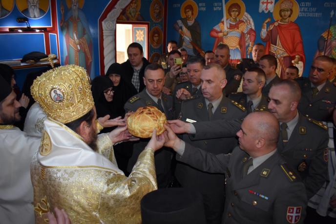 Pripadnici Četvrte brigade kopnene vojske su danas obeležili i krsnu slavu jedinice — Svetog Atanasija Velikog, a svetu arhijerejsku liturgiju tim povodom služio je vikar patrijarha srpskog Porfirija, episkop lipljanski i vojni Dositej.