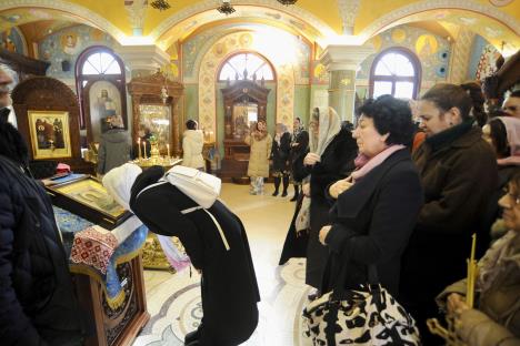 Nekoliko hiljada vernika strpljivo je juče satima čekalo na red da celiva mirotočivu relikviju iz Rusije "Umekšanje zlih srca", koja će biti izložena i danas u ruskoj Crkvi Svete Trojice na Tašmajdanu