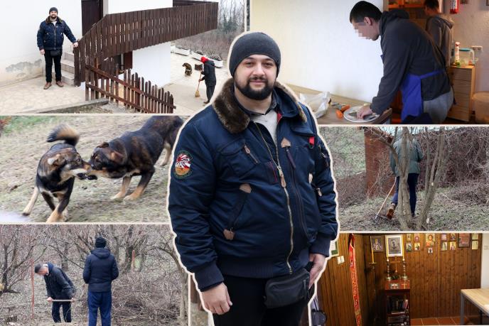 Tokom posete nedavno otvorene kuće u okolini Beograda reporteri Kurira zatekli su štićenike koji rade u dvorištu. Dočekao nas je vaspitač i koordinator Andrej Lukman, kao i dva psa. Skaču, hoće da se maze, udomljeni su, kaže nam Andrej, koji nas je sproveo i do kuhinje.